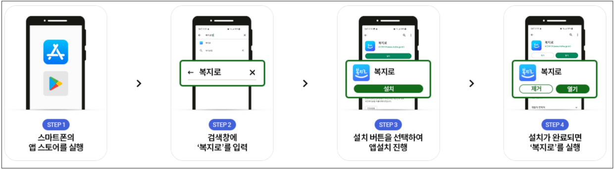 복지로 모바일 어플리케이션은 보건복지부와 한국사회보장정보원에서 서비스하는 대한민국 대표 국민복지포털 어플리케이션입니다. 복지로 모바일 어플리케이션은 중앙부처, 지자체 및 민