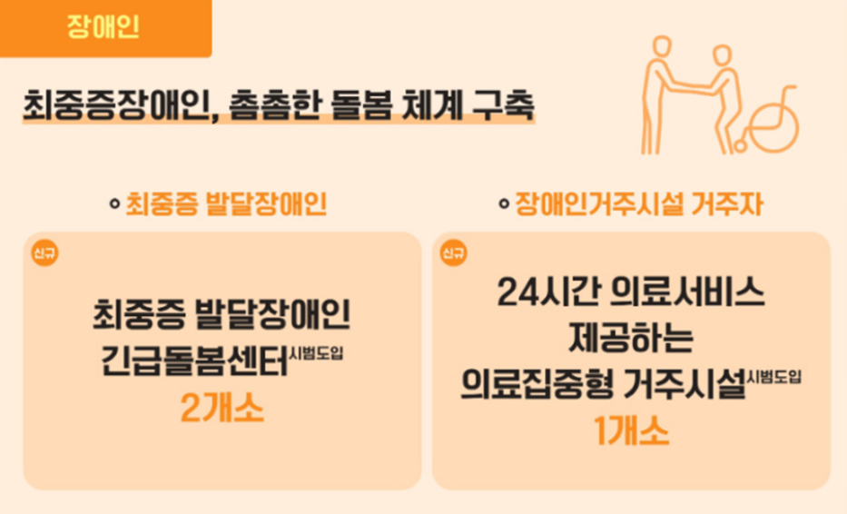 ✅ 최중증 장애인을 우이한 돌봄 체계를 더 촘촘하게 구축하고 다양한 서비스를 원하는 장애인을 위해 개인 예산제를 증대합니다.
